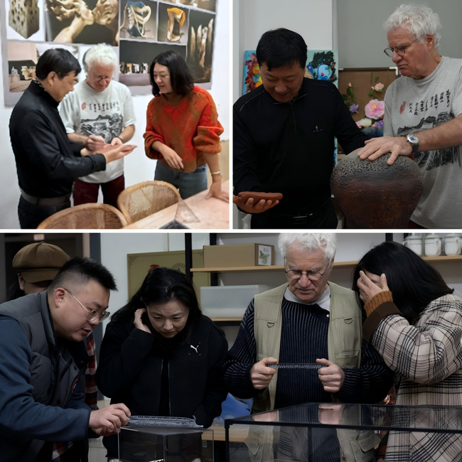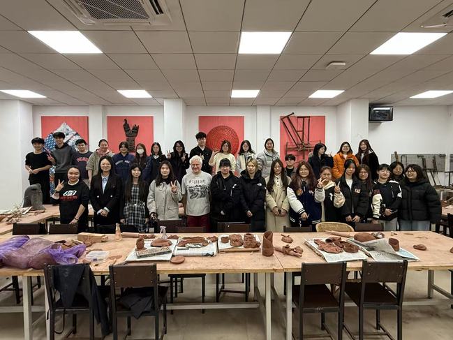 实践活动的尾声,考夫曼和师生们的一件件陶艺作品生动地向人们叙说着发现的意义和心灵与手巧的联动,这些融合自然肌理与人文思考的创作,将作为“文化接力”的实证,正如考夫曼在活动结束时的致辞中所言,“今天我们共同完成的不仅是艺术创作,更是文明基因的跨时空传递——当东方的哲思遇见西方的造型语言,传统工艺便在当代语境中获得了永恒的生命力。”这场持续数小时的艺术教学活动,最终定格在一张合影之中,这一画面不仅是我校中外文化交流盛事的珍贵印记,也是工艺美术技艺传承在高等院校中的实践展开、更是开启了我校国际文化交流新历程。