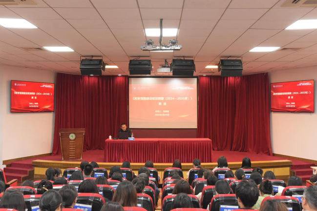 为更好地学习领会、贯彻落实《教育强国建设规划纲要(2024 - 2035 年)》。4月25日下午,我校邀请中国教育科学研究院教育统计研究所所长马晓强来校作专题辅导报告。我校党委理论学习中心组成员、各基层党组织书记及2025年党员、干部和教师能力提升培训班全体学员在宝山校区报告厅聆听本场报告。
