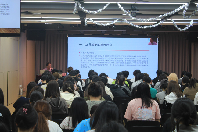 讲座现场气氛热烈,李占才教授的精彩讲解赢得了阵阵掌声。通过本次讲座,师生们对中国人民抗日战争的历史有了更加深刻的了解,对伟大的抗战精神有了更加深入的体会。