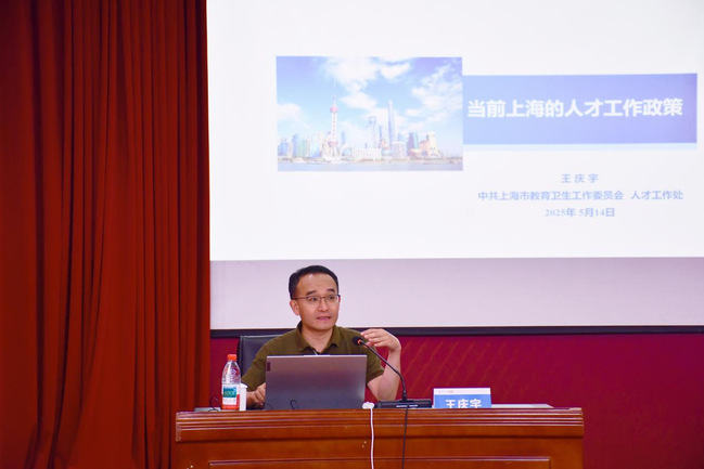 上海市教卫工作党委人才工作处处长王庆宇应邀来我校作专题辅导报告