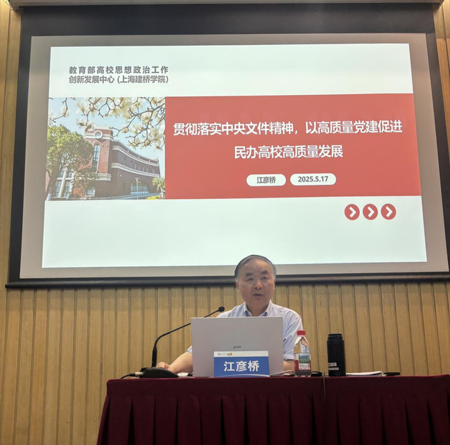 上午,教育部高校思想政治工作创新发展中心(上海建桥学院)主任、上海市民办教育协会专家委员会委员江彦桥作《贯彻落实<关于加强民办学校党的建设工作意见>,以高质量党建促进民办学校高质量发展》专题讲座。江彦桥围绕“《意见》是做好民办学校党建工作的重要遵循”“加强党的领导是办好民办教育的根本保证”“强化思想政治引领是民办高校党建的重要抓手”“加强基层党建需要落细、落小、落实”“不断提高参与决策和监督的有效性”“以一流党建引领学校高质量发展的探索与实践”六个方面,结合具体案例与工作体会,为学校以高质量党建引领高质量发展提供可学习的范例与经验。