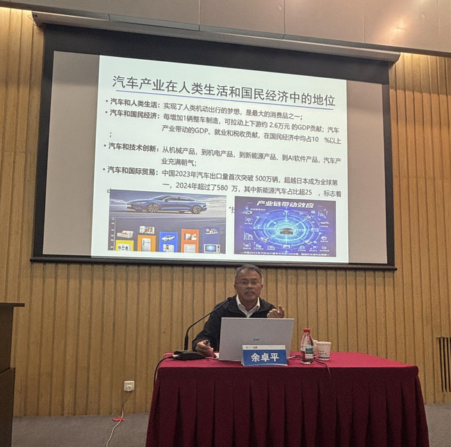 下午,上海市政府参事、国家智能型新能源汽车协同创新中心主任、同济大学汽车学院教授余卓平作《创新引领新质生产力发展——我国新能源汽车产业在科技变革中崛起》专题辅导报告。余卓平教授从汽车产业的国家战略地位切入,系统回顾了我国汽车工业从传统燃油车到新能源智能网联汽车的发展历程,深入分析了当前产业面临的电动化、智能化、共享化转型趋势。他指出,在“碳中和”目标驱动下,新能源汽车已成为全球科技竞争的高地,我国通过政策引导与技术突破,实现了从“跟跑”到“并跑”甚至“领跑”的跨越。最后,报告聚焦氢电复合动力、车路云协同等前沿技术,探讨了产业链面临的挑战与机遇,为全体学员呈现了我国新能源汽车产业的发展全貌与未来前景。