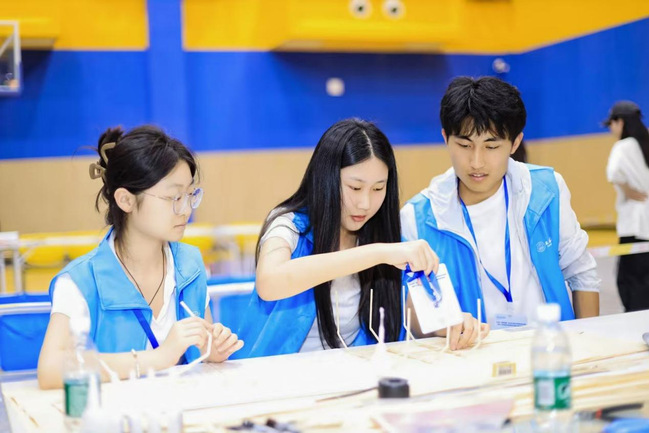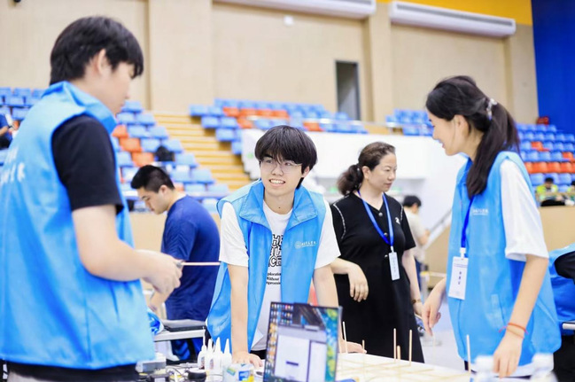 ▲我校参赛2队在赛场制作模型