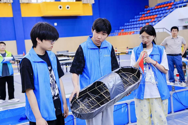 本届大赛赛题以乌篷船为主题,要求参赛选手设计船体结构,并在规定时间内现场完成船体模型制作,完成船体静态加载、载重航行、水浪与河岸撞击三项测试。赛制采用“理论方案+模型外观+陈述答辩+加载表现”的形式进行计分。