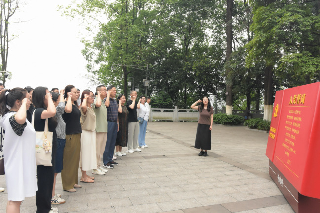 6月24日,研学活动正式启动。在赵一曼纪念馆内,泛黄的历史照片、承载记忆的实物展品,生动地还原了赵一曼烈士投身革命、英勇抗敌的壮丽人生。讲解员深情讲述的“未惜头颅新故国,甘将热血沃中华”的英雄事迹,让全体学员深受震撼。大家驻足凝视、静心聆听,在缅怀先烈中筑牢信仰根基。参观结束后,全体党员教师面向党旗重温入党誓词,进一步坚定理想信念,牢记初心使命。