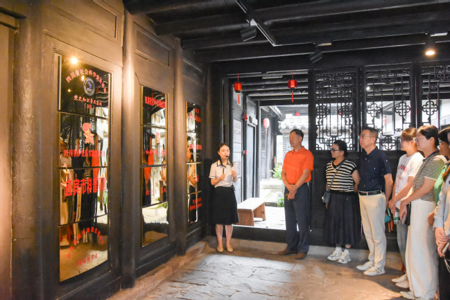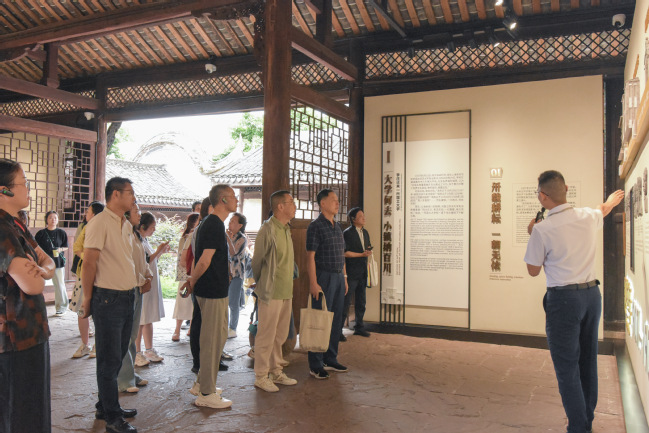 随后,研学团前往抗战时期“文化四坝”之一的李庄,先后走进李庄文化抗战博物馆、中国建筑史研究基地及同济大学办学旧址。在李庄文化抗战博物馆,借助详实的文献资料和场景复原,学员们全面了解了抗战时期李庄接纳四方学者、守护文化火种的光辉历史,深切体会到“同大迁川,李庄欢迎;一切需要,地方供应”的深厚军民情谊。在同济大学办学旧址,老一辈知识分子在艰难困苦中坚守学术、教书育人的感人事迹,让大家对“为国治学、为国育才”的使命有了更深刻的理解,也进一步加深了对李庄抗战文化的认知。