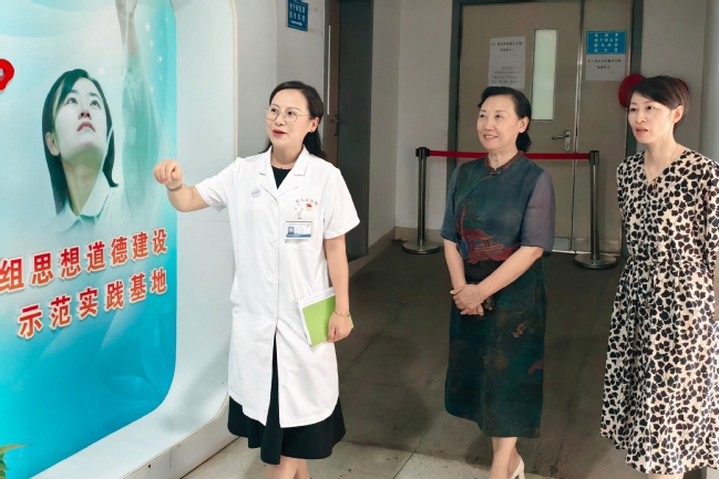会前,在院方陪同下,姚淳一行参观了医院于井子护理小组思想道德建设示范实践基地、院史馆及病房区域,深入了解了医院的历史文化、护理特色和临床实践环境。期间,姚淳同志一行亲切看望了我校在该院实习的学生。实习大组长沈思雅全面汇报了近阶段实习工作的具体情况。医院护理部副主任詹蕾对我校实习生展现出的专业素养和综合能力给予了高度肯定与赞扬。