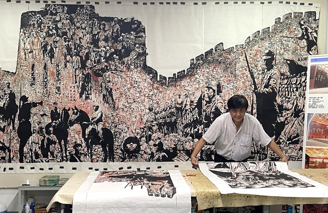 这个暑假,阴佳教授不畏酷暑、冒着高温赶印,每一道刻痕都是对先烈的致敬,每一抹油墨都是对和平的承诺。作为教育工作者,阴佳教授通过作品搭建了一座座桥梁,让更多的年轻人从艺术中触摸历史的温度,从历史中汲取前行的力量。