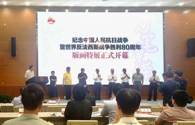 刀木镌刻民族魂,赤心致敬八十年。9月18日上午10时,上海交通大学博物馆内气氛庄重而热烈。随着红绸缓缓揭开,由同济大学教授、我校学院设计创意学院院长阴佳(空间艺术专委会副主任)、上师大美术学院苏岩声教授、上海大学上海美术学院徐龙宝教授联袂创作的巨幅木刻版画《记忆的拓片:血肉之躯·胜利丰碑》正式入藏上海交通大学博物馆,成为“纪念中国人民抗日战争暨世界反法西斯战争胜利80周年版画特展”的核心展品。作品在揭幕瞬间引发全场驻足凝视:画面中深浅交错的刀痕,似在诉说先烈的坚韧;浓淡相宜的油墨,仿佛将八十年前的烽火与今日的和平紧紧相连。这一刻,艺术不再是纸上的图像,而是跨越时空的历史对话,亦是空间艺术专委会坚守文化使命、传承红色基因的鲜活注脚。