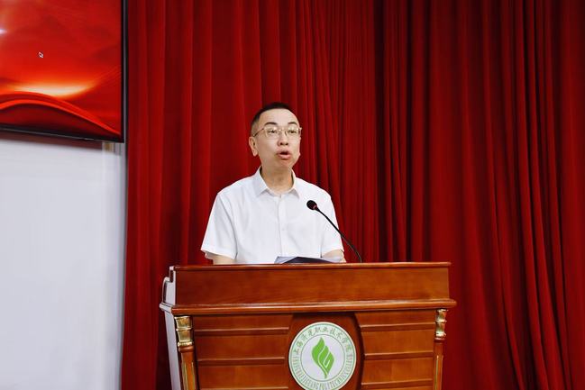 ▲ 校长贺鹏飞在会上作工作部署