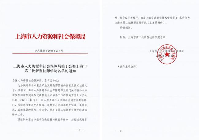近日,上海市人力资源和社会保障局发布《关于公布上海市第二批新型技师学院名单的通知》(沪人社职〔2025〕257号),上海济光职业技术学院成功入选,成为上海市第二批新型技师学院。这一荣誉是对学院在高技能人才培养领域所做努力与成果的高度认可。
