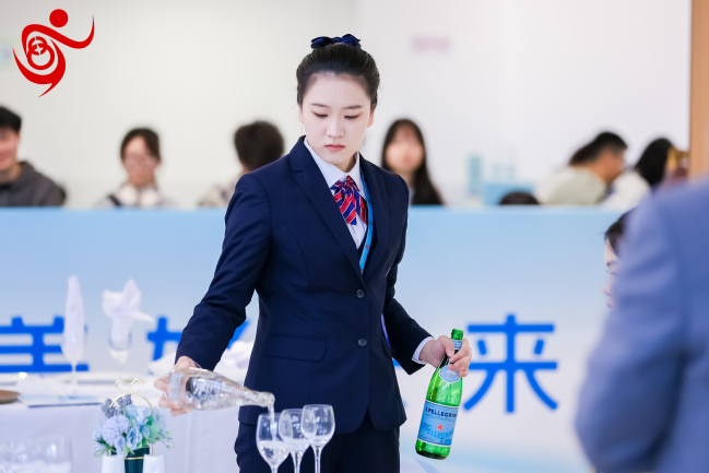 在比赛中,济光学子们沉着应战,表现卓越。在宾客接待环节,他们以流利的英语和亲切的微笑,从容展示专业邮轮对客服务技巧,应对各类咨询与客诉问题;在娱乐活动策划中,他们的创意方案别出心裁,充分体现了邮轮旅行的乐趣与多样性;于鸡尾酒服务赛场,他们动作行云流水,精准调制出一杯杯色香味俱佳的饮品;而在邮轮特色餐厅服务模块,他们则将西餐服务的优雅与标准展现得淋漓尽致。