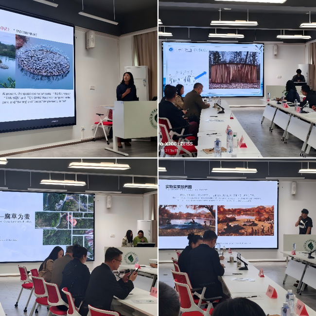 在《宜兴黄龙山矿址公园的环境装置艺术设计》教学项目汇报环节,王云霞老师介绍了项目的概况和教学任务要求,她指出:本项目是由设计创意学院荣誉院长、国际大师联合国教科文组织国际陶艺学会主席雅克考夫曼先生和我院艺术导师、国家级工艺美术大师蒋国兴主持的城市空间文化建设的公园的环境装置艺术设计实际项目,要求结合宜兴本地的地域文化,突出24节气的72“后”主题,创作出兼具中国传统文化内涵和当代艺术性、互动、休闲等多重功能的作品。此次教学活动得到了中国工艺美术学会空间艺术专委会、上海工艺美术学会的大力支持,另外,专委会还为方案优秀的同学设置了奖励办法。在学生汇报环节中,各组学生代表依次登台,进行小组方案汇报。各组方案亮点纷呈,其创新思路获得在场专家的关注,特别是第一组的学生代表用流利的英语进行方案介绍,令德国教授和同济大学的教授惊讶并赞叹。