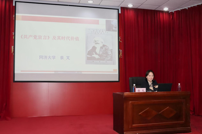 最后,袁芃副教授重点对照党的二十大、二十届三中全会和二十届四中全会精神,阐释了《共产党宣言》的时代价值。《共产党宣言》中“每个人的自由发展是一切人自由发展的条件”与“以人民为中心”“全过程人民民主”“共同富裕”等理念一脉相承。我们要在学深悟透《共产党宣言》的基础上坚持共产党人的初心与使命、坚持生产资料公有制,大力发展生产力、坚持和发展社会主义民主。