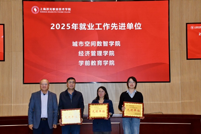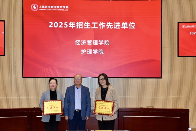 副校长孙遥宣读2025年招生就业先进单位表彰决定,护理学院和经济管理学院被评为2025年招生工作先进单位;经济管理学院、城市空间数智学院与学前教育学院被评为2025年就业工作先进单位。