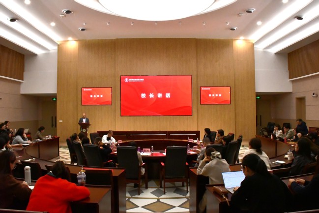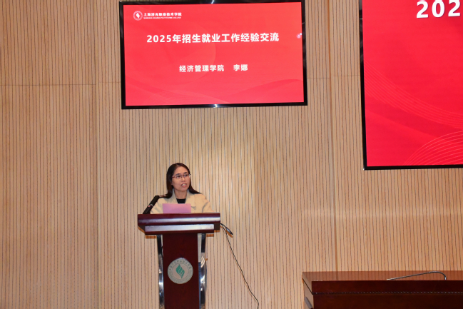 11月11日下午,在学校宝山校区圆形会议室召开了2025年招生就业工作总结会暨2026年招生就业工作动员会。校长贺鹏飞、党委副书记刘丽、副校长王云飞、副校长孙遥、校长助理姚桂芳出席了本次会议。全体中层干部、各学院党政负责人、全体专业主任、全体辅导员也共同参会。会议由学生处处长毛燕静主持。