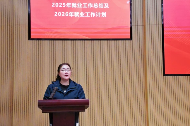 就业指导中心主任杨伟英以“全员全程全方位 护航高质量充分就业”为主题汇报了2025年就业工作。2025年,我校围绕“新时代大学生高质量就业”这一核心目标,坚持“就业优先、积极就业”工作理念,深入实施“一把手”工程,成功构建起多元化的就业促进机制。我们通过访企拓岗、校园招聘、就业扶持、创业鼓励等一系列组合拳,全面升级就业服务,致力于实现我校毕业生更充分、更高质量的就业。2026年我校将进一步通过专项行动、招聘活动、政策扶持与创业引导的协同发力,不断完善就业服务体系,切实肩负起立德树人、服务就业民生的使命担当。