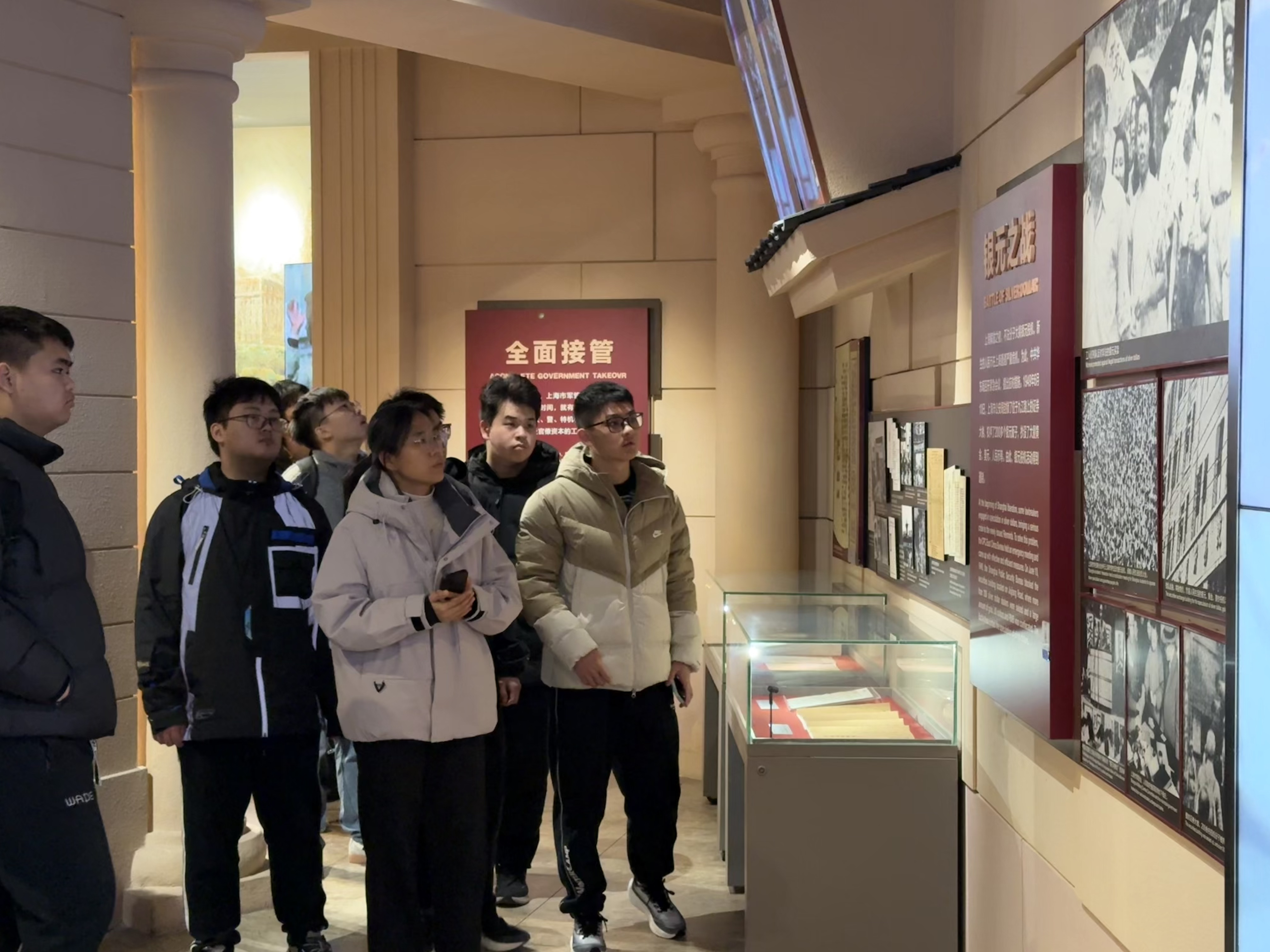 敬献鲜花仪式结束后,师生们移步前往上海解放纪念馆开展研学活动。在讲解员的引导下,大家驻足于展厅内的珍贵文物、历史照片、文献资料与场景复原前,重温上海解放战役的峥嵘岁月,深入了解革命先烈为守护城市、争取解放浴血奋战的英雄事迹。活动中,师生认真聆听讲解、仔细记录感悟,革命先烈的无畏精神让大家深受触动。