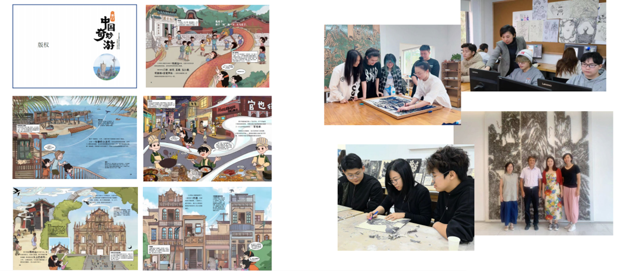 《小托儿所,大世界》国际项目中,工作室结合AIGC技术为加拿大维多利亚大学创作世界各国的传统文化主题绘本,100%原创方案被采纳,并有计划在北美出版发行。在向世界讲好中国故事以及介绍各民族和国家的传统文化艺术的同时,也实现了我校非遗教育成果的文化输出,从另一个角度体现了职教出海。