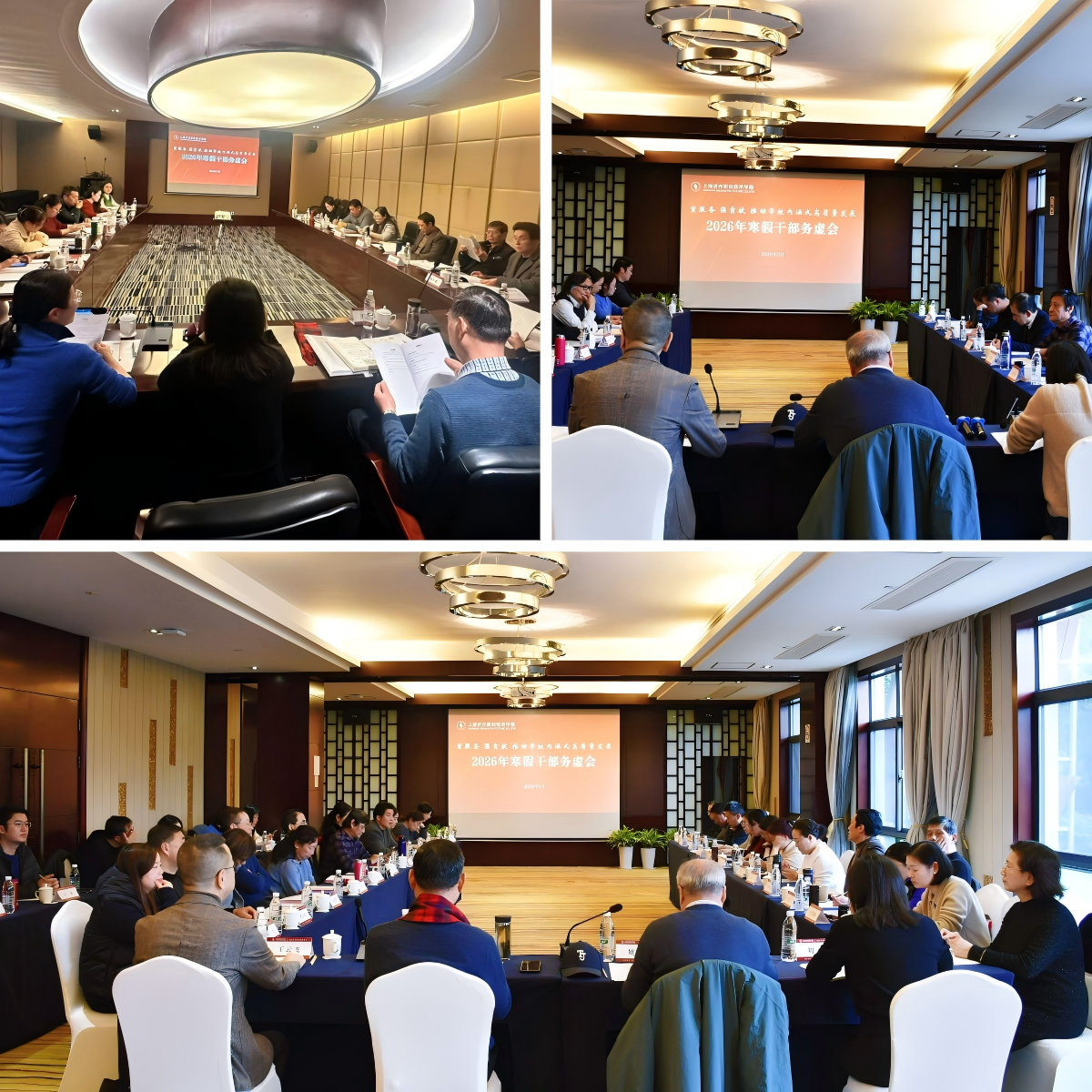 3月4日至5日,学校召开了2026年寒假干部务虚会。会议紧密围绕2028年上海市高职办学能力评价重点工作,聚焦专业建设、产教融合、招生就业、教学质量提升等核心任务,研究部署学校新一年的重点工作,奋力实现学校“十五五”良好开局。校长贺鹏飞、党委书记姜富明、党委副书记刘丽、副校长王云飞出席此次会议,各单位主要负责人参会。会议由贺鹏飞校长主持。
